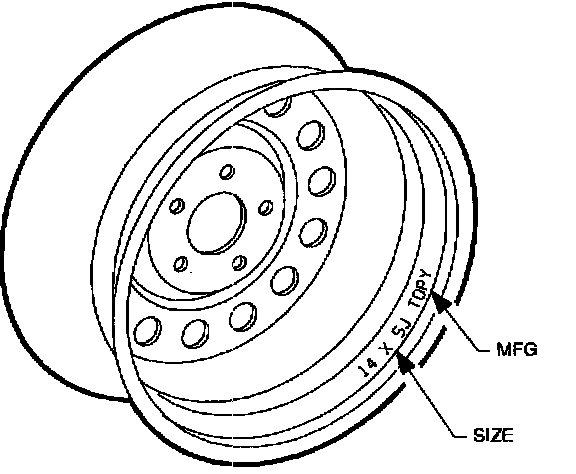 Identification information for the aluminum wheels is located on outside or inside face of the wheel.