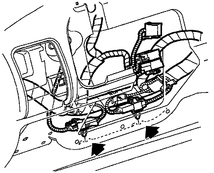 5. Push out clips that secure the driver and passenger inflator module (YEL 2-way) connectors to UP panel brace.