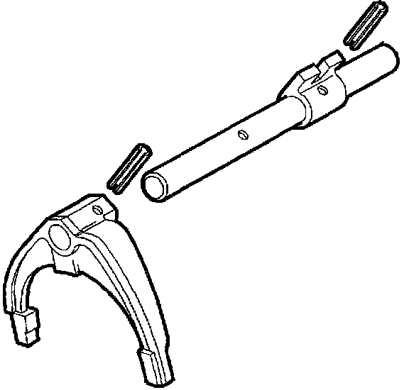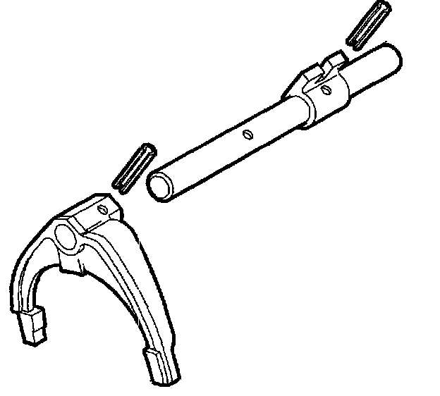 3. It any shift forks, shift shafts, or shift shaft blocks were disassembled, reassemble shift shafts by driving new retaining pins into shift forks or shift shaft blocks.