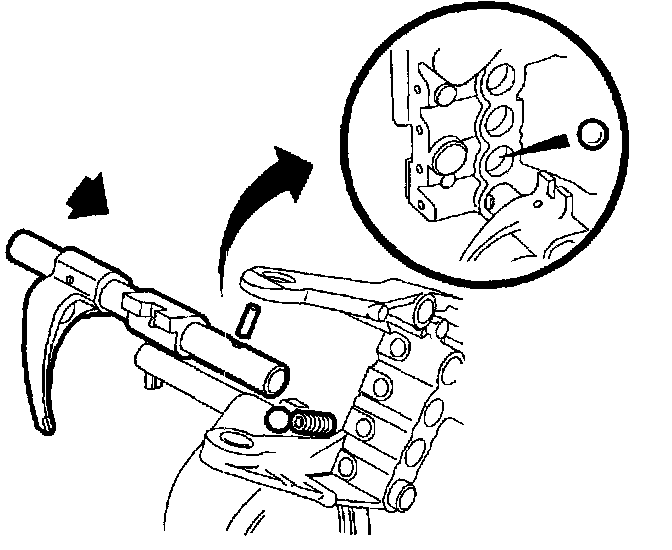 7. Insert shift shaft interlock ball between 3rd/4th shaft and 5th shaft. Install interlock pin in 5th shaft.