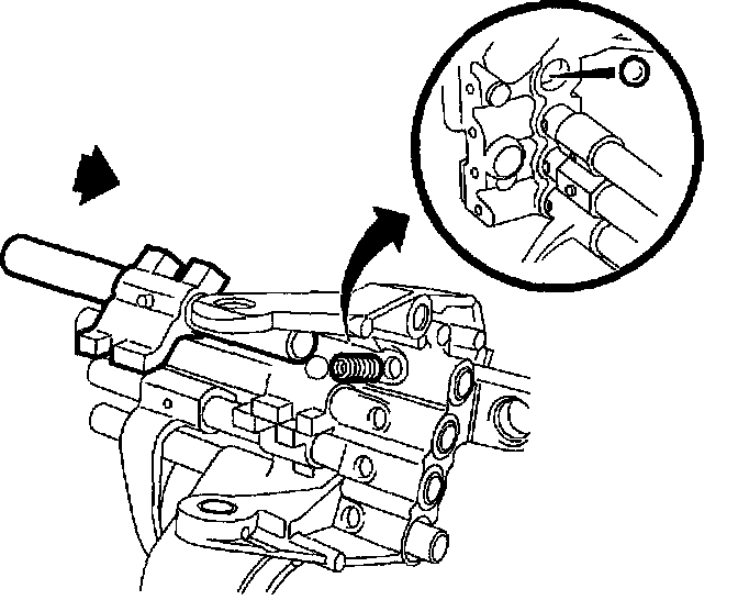 8. Install 5th detent spring and ball. Compress ball and spring and install 5th shift shaft. Place shaft in neutral position.