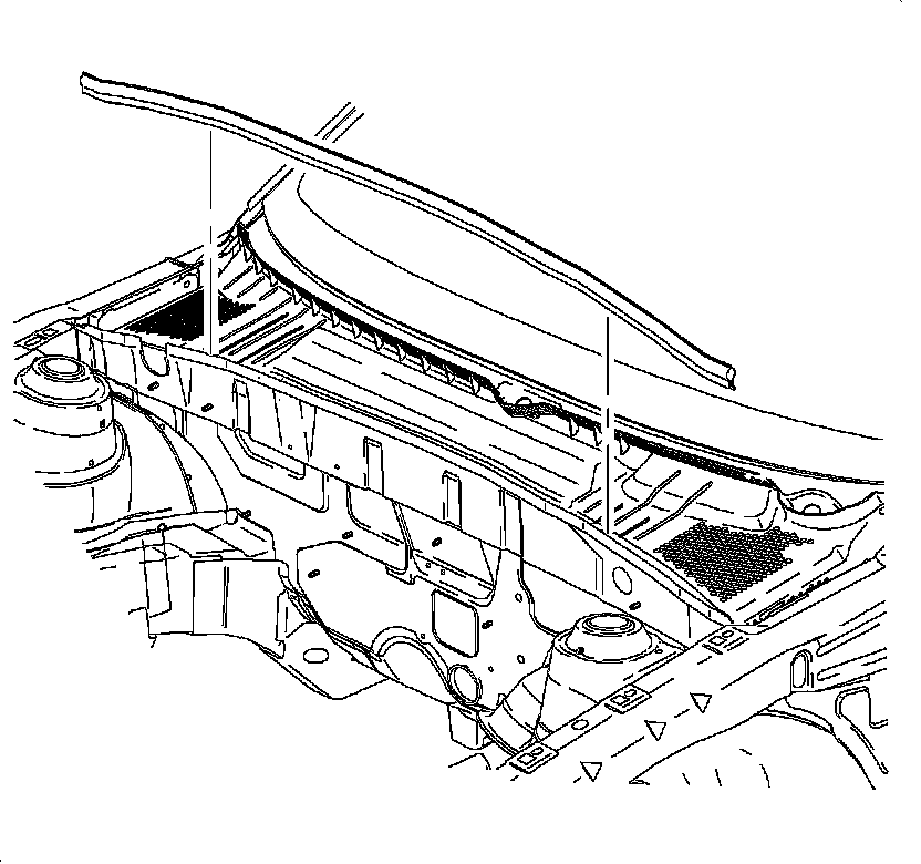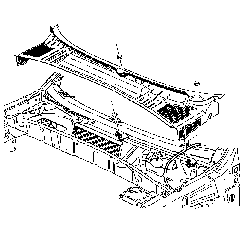 4. Remove the lower windshield molding to provide access to remove the air inlet grill panel.