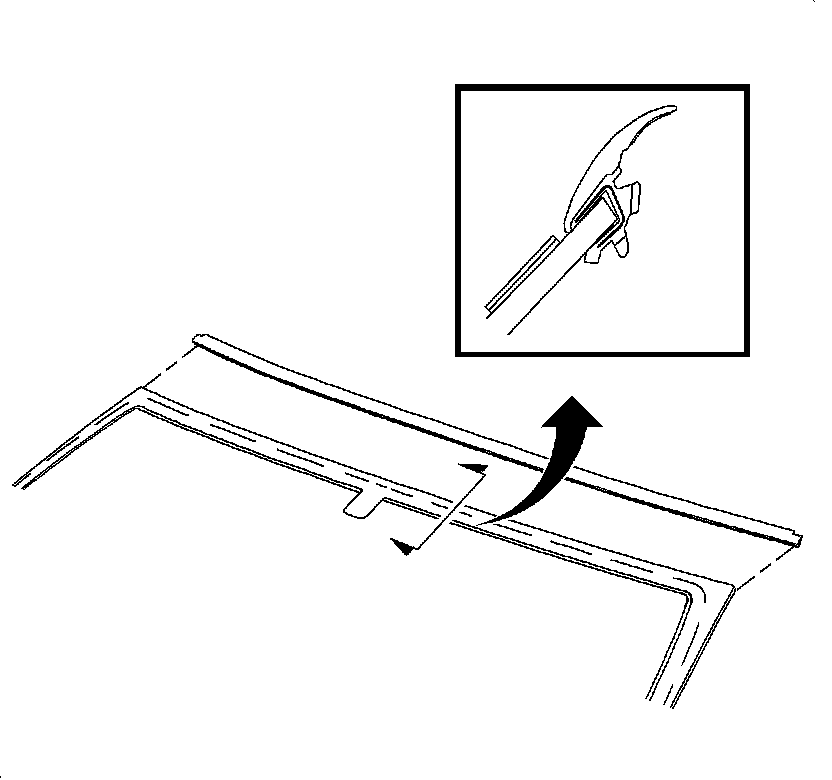 7. Remove the upper windshield to roof molding by pulling from one side to another and discard.