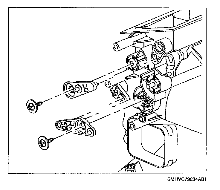 1. Install temperature, heater, defroster, and vent doors into case.