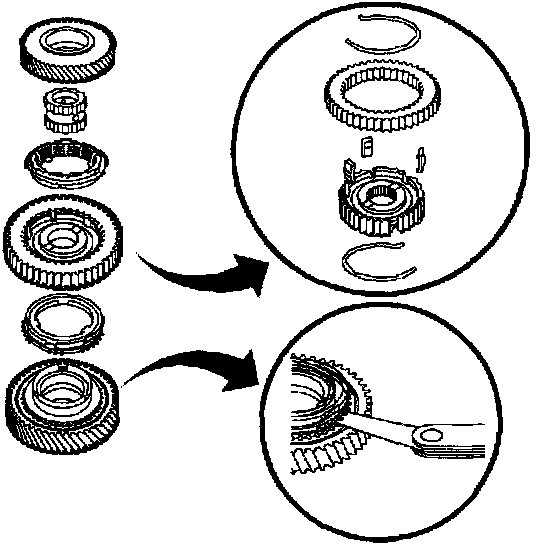 NOTICE: Do not mix up synchronizer components. All of the parts should be reinstalled in their original locations.
