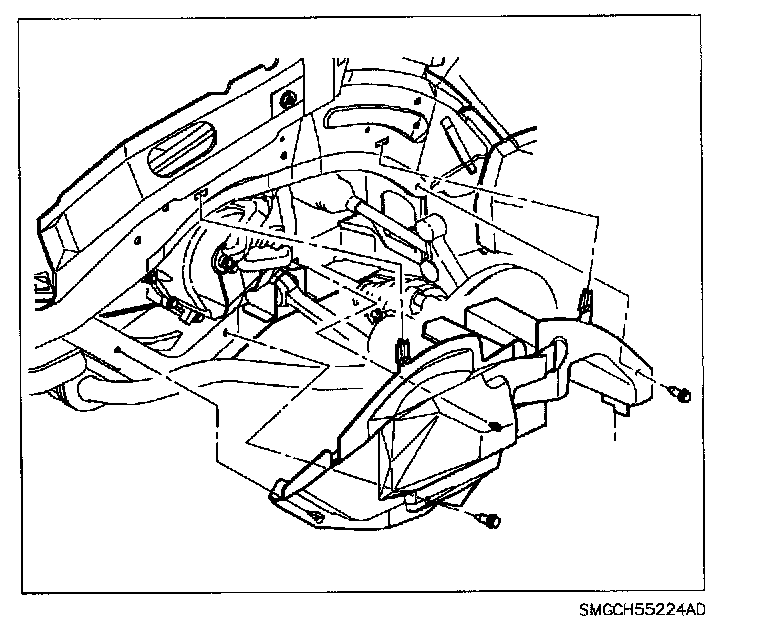 CAUTION: MAKE SURE THE VEHICLE IS PROPERLY SUPPORTED AND SQUARELY POSITIONED PRIOR TO LIFTING. TO AVOID PERSONAL INJURY WHEN A VEHICLE IS ON A HOIST, PROVIDE ADDITIONAL SUPPORT FOR THE VEHICLE ON THE OPPOSITE END FROM WHICH COMPONENTS ARE REMOVED. MAKE SURE HOIST DOES NOT PINCH FUEL OR BRAKE LINES.
