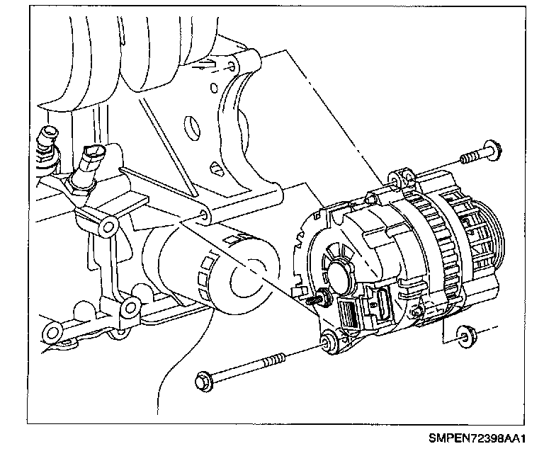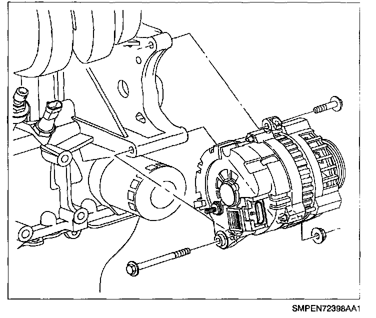 1. Position generator on lower cylinder block bracket and install the lower attachment bolt. Install upper attachment bolt and torque both bolts.
