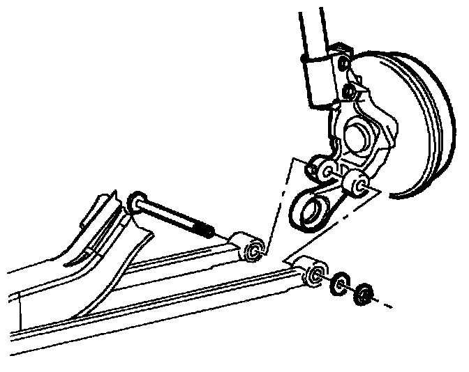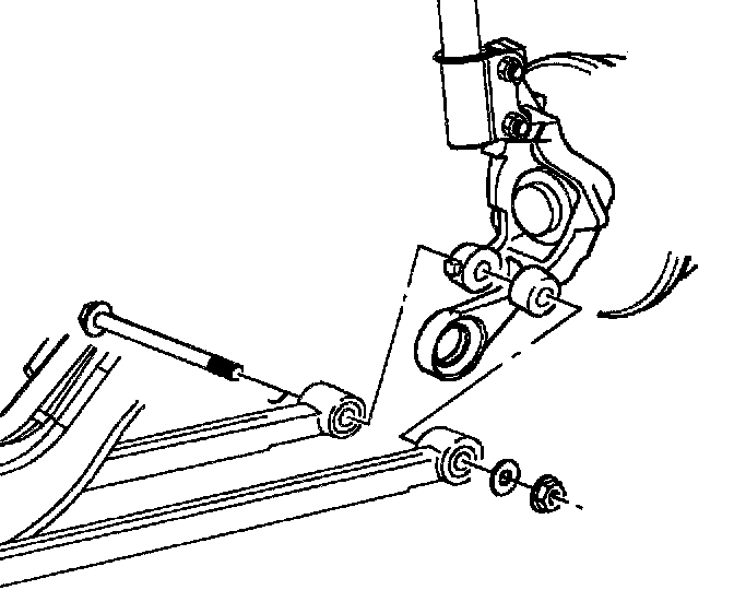 4. Remove left and right trailing arm-to-body fasteners and remove arms from knuckles.