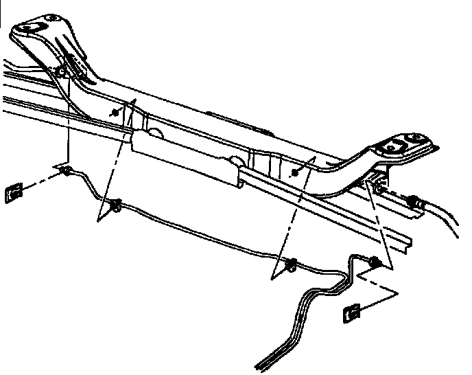 9. Attach left and right brake hoses to crossmember with securing clips.