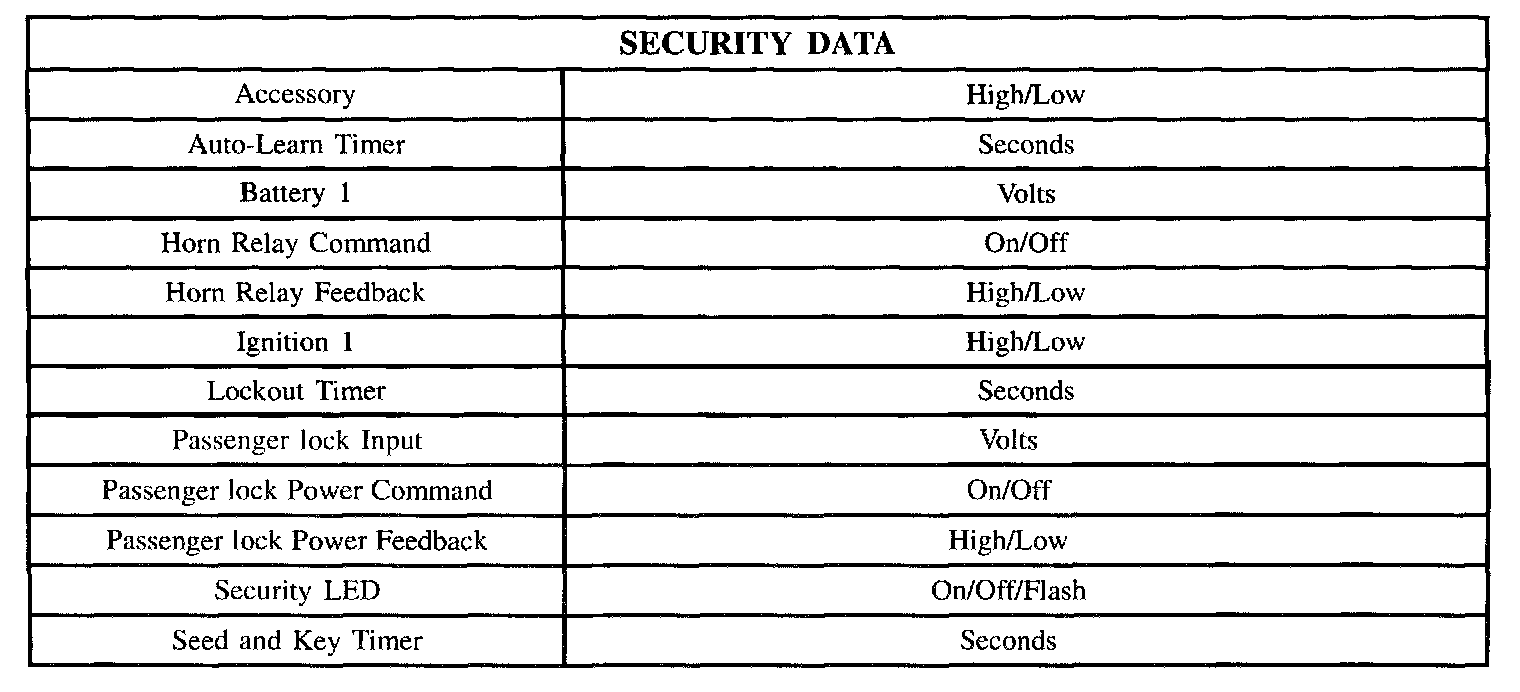 Scan Tool Display - Security Data: