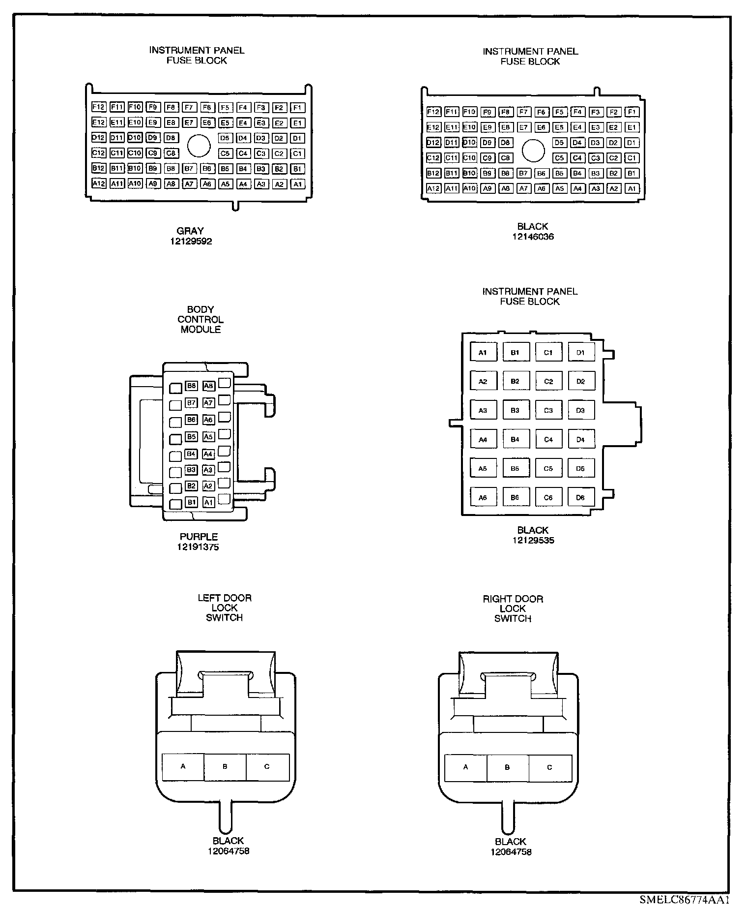 RKE/Security System Connector Face Views: