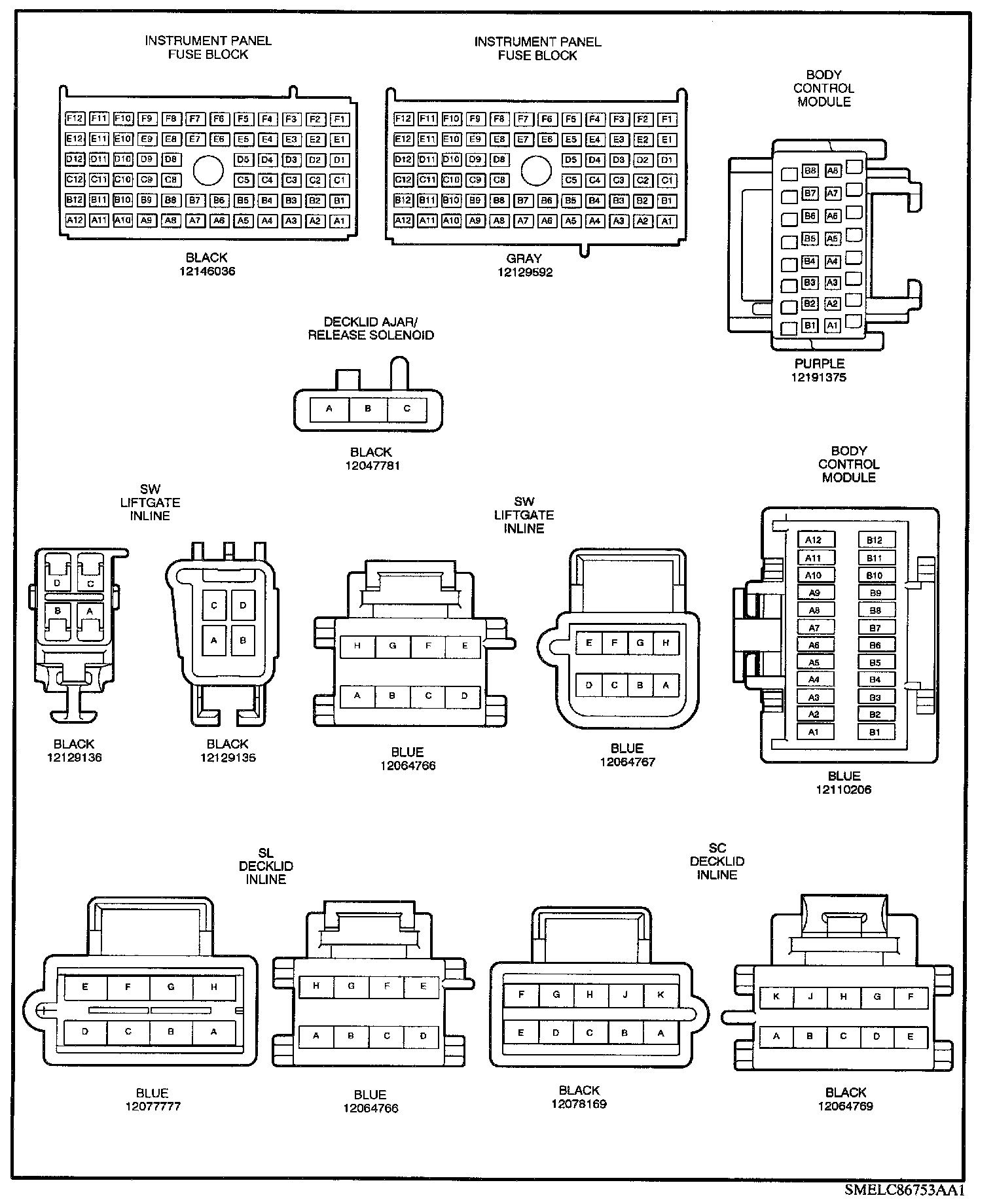 Declid/Liftgate Release Connector Face Views: