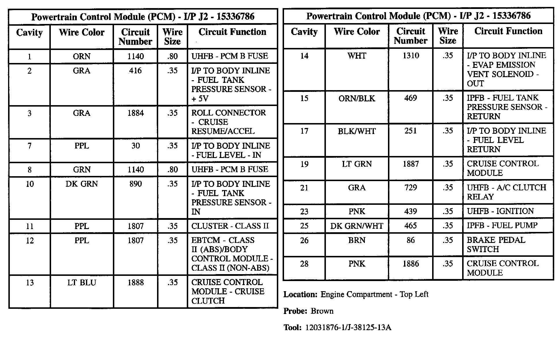 Powertrain Control Module (PCM) - I/P J2 (part 1 Of 2):