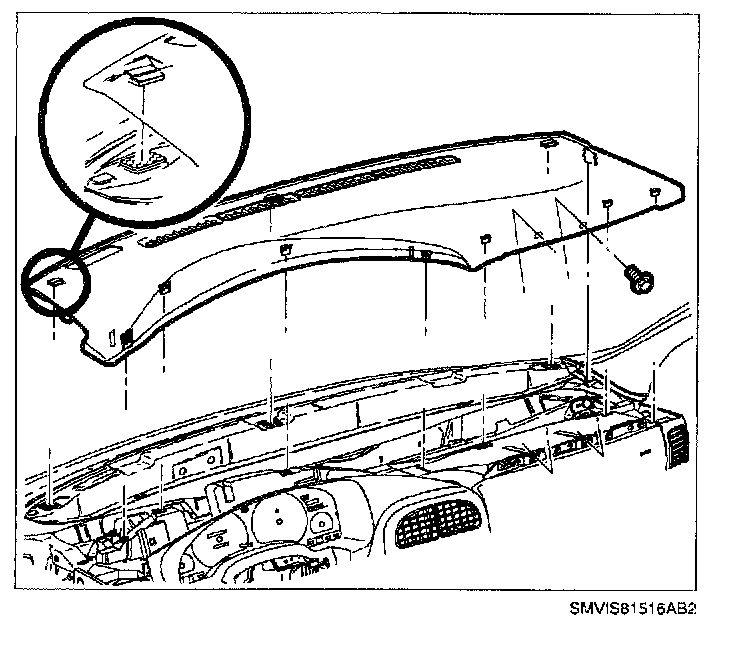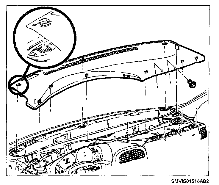 9.3 Align tabs on sides of upper trim panel with openings in windshield garnish molding.