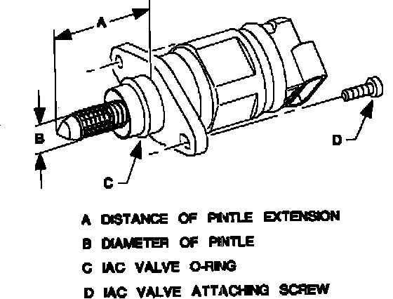 The IAC valve is located in the throttle body on both engines. The idle speed is controlled by the PCM using the IAC valve. The IAC valve consists of a two-coil stepper motor that moves a pintle valve in and out from the seat controlling the amount air bypassing the throttle plate. The PCM controls the IAC valve by supplying ignition voltage or ground to any of the four circuits of coil "A" or coil "B". When one circuit of a coil is supplied ignition voltage the other is supplied ground. Coil "A" and coil "B"are independent of each other, however both must be functional for the valve to move correctly. Retracting the IAC valve allows more air to flow into the intake manifold which raises engine speed. Extending the IAC valve allows less air to flow into the intake manifold lowering engine speed. The determination of how much air is allowed into the engine is based on engine speed, A/C relay command, ECT, TP angle, transaxle range switch position and transaxle shifting. Once the PCM learns the IAC position for A/C relay On and A/C relay Off, it can retard or advance ignition timing to finely adjust the idle speed without moving the IAC valve.