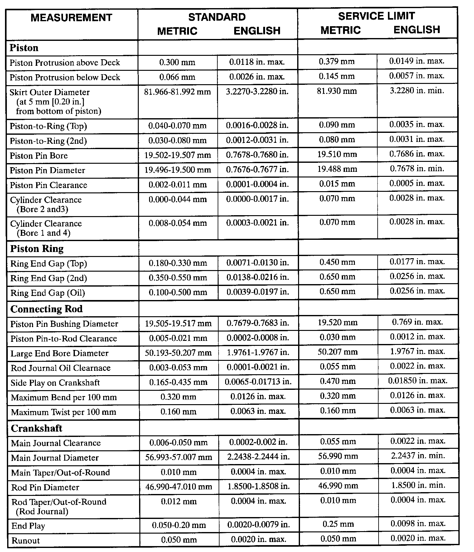 Specifications and Limits