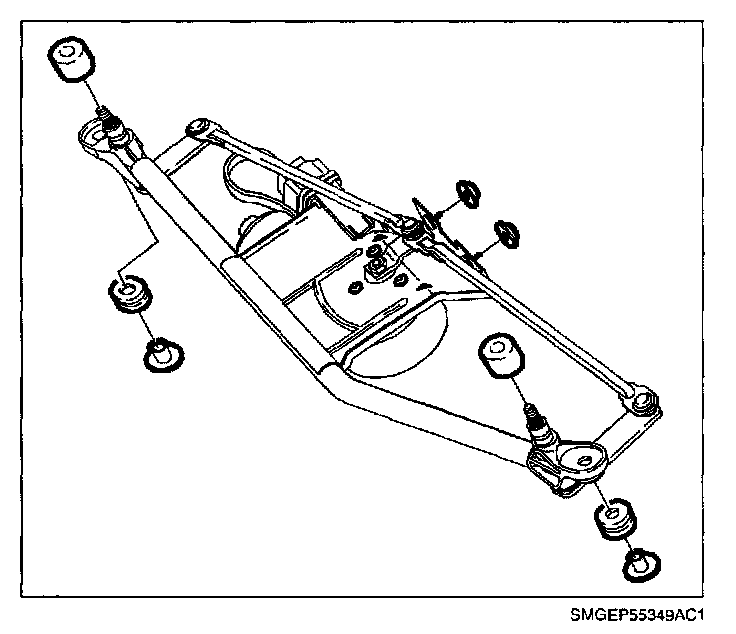 Wiper module bushings are available in a kit with all bushings necessary to mount the module. Make sure metal bushing inserts are installed on the front of dash side (bottom) of the wiper module.