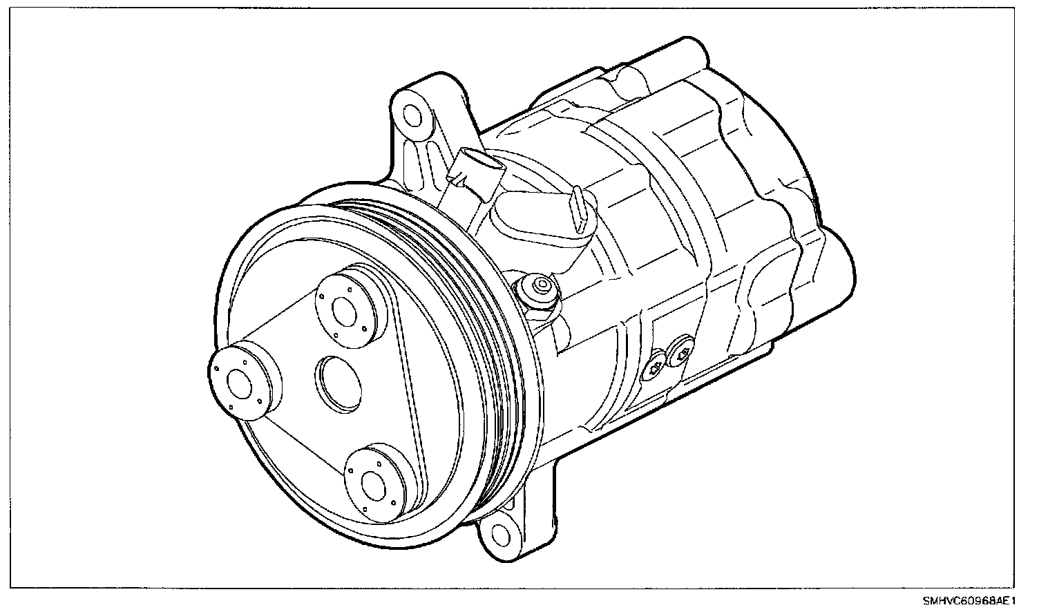 The Saturn compressor is a variable displacement rotary vane type pump. The rotor assembly houses five lightweight vanes that extend outward contacting the cylinder wall creating the compression area. The compressor has an internal control valve that allows it to change its pumping capacity or displacement, reacting to heat loads on the air conditioning system. The range of displacement can vary from 5 percent (5.5 cc) to 100 percent (110 cc). The compressor's natural or resting state is at minimum displacement.