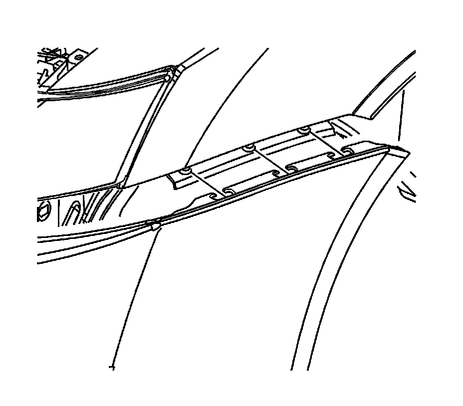3. Remove the front roof applique. Refer to Molding Replacement - Roof Weld Joint Reveal - Front (Coupe) ()Molding Replacement - Roof Weld Joint Reveal - Front (Sedan) () in Exterior Trim.