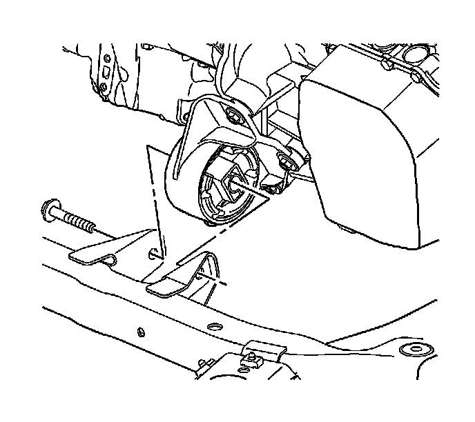 8. Hand start the front transaxle mount through bolt.