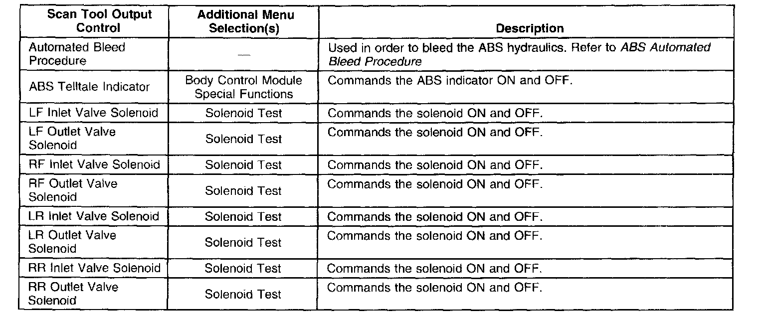 Scan Tool Output Controls: