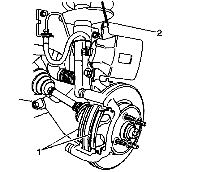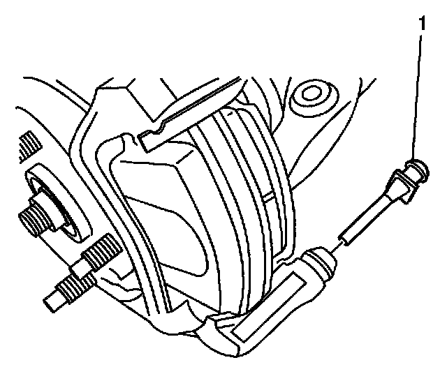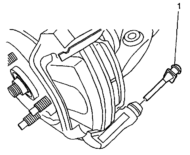 Notice: Support the brake caliper with heavy mechanic's wire, or equivalent, whenever it is separated from it's mount and the hydraulic flexible brake hose is still connected. Failure to support the caliper in this manner will cause the flexible brake hose to bear the weight of the caliper, which may cause damage to the brake hose and in turn may cause a brake fluid leak.