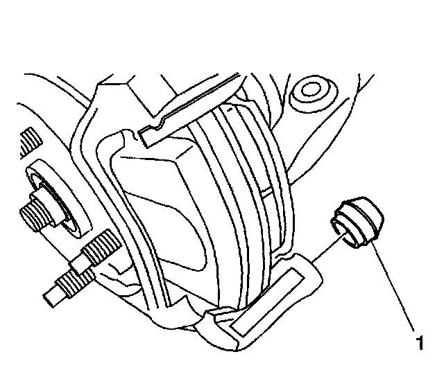 1. Apply a thin, light coating of high temperature silicone brake lubricant to the brake caliper guide pin boots (1).