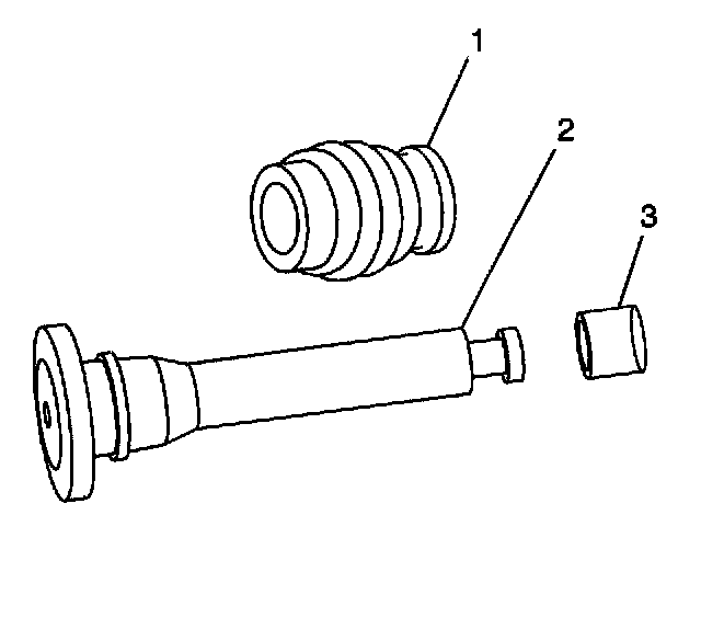 11. Inspect the guide pins and the bushing (3) on the upper guide pin. If either of the guide pin assemblies is damaged or corroded, or if the bushing is damaged, the guide pins require replacement.