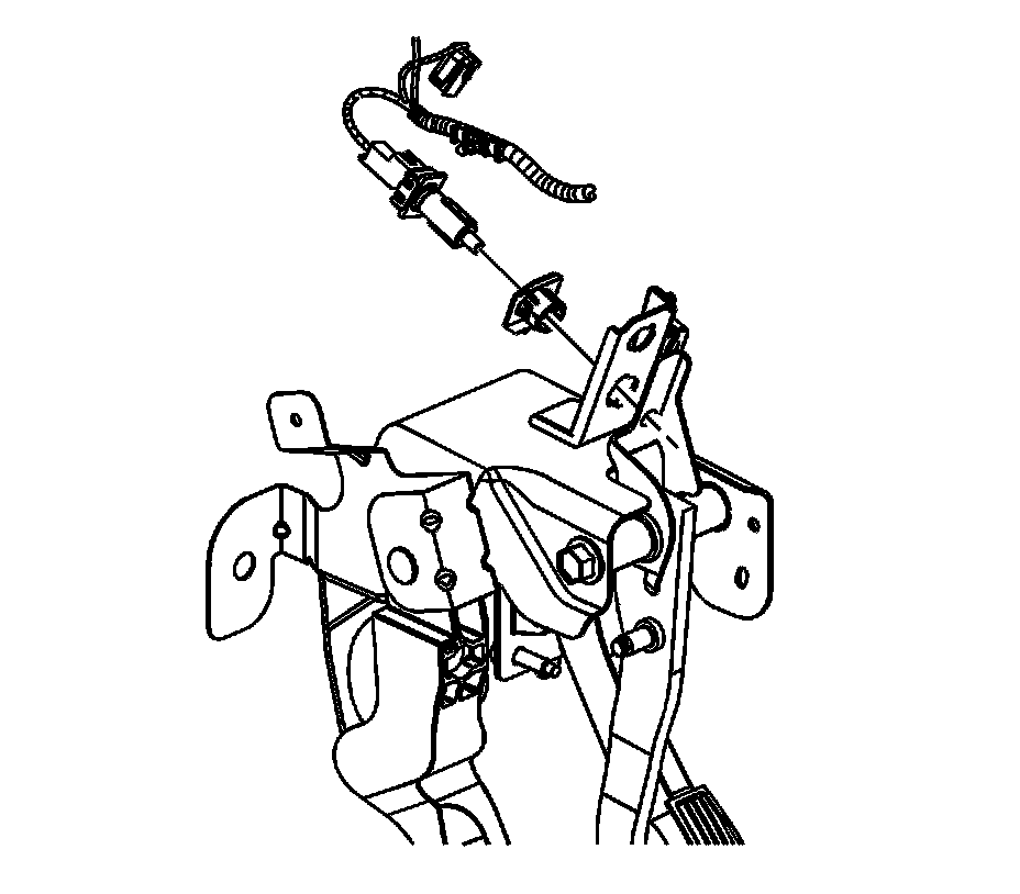 1. Depress the brake pedal and insert the cruise control release switch into the bracket until the retainer is fully seated.