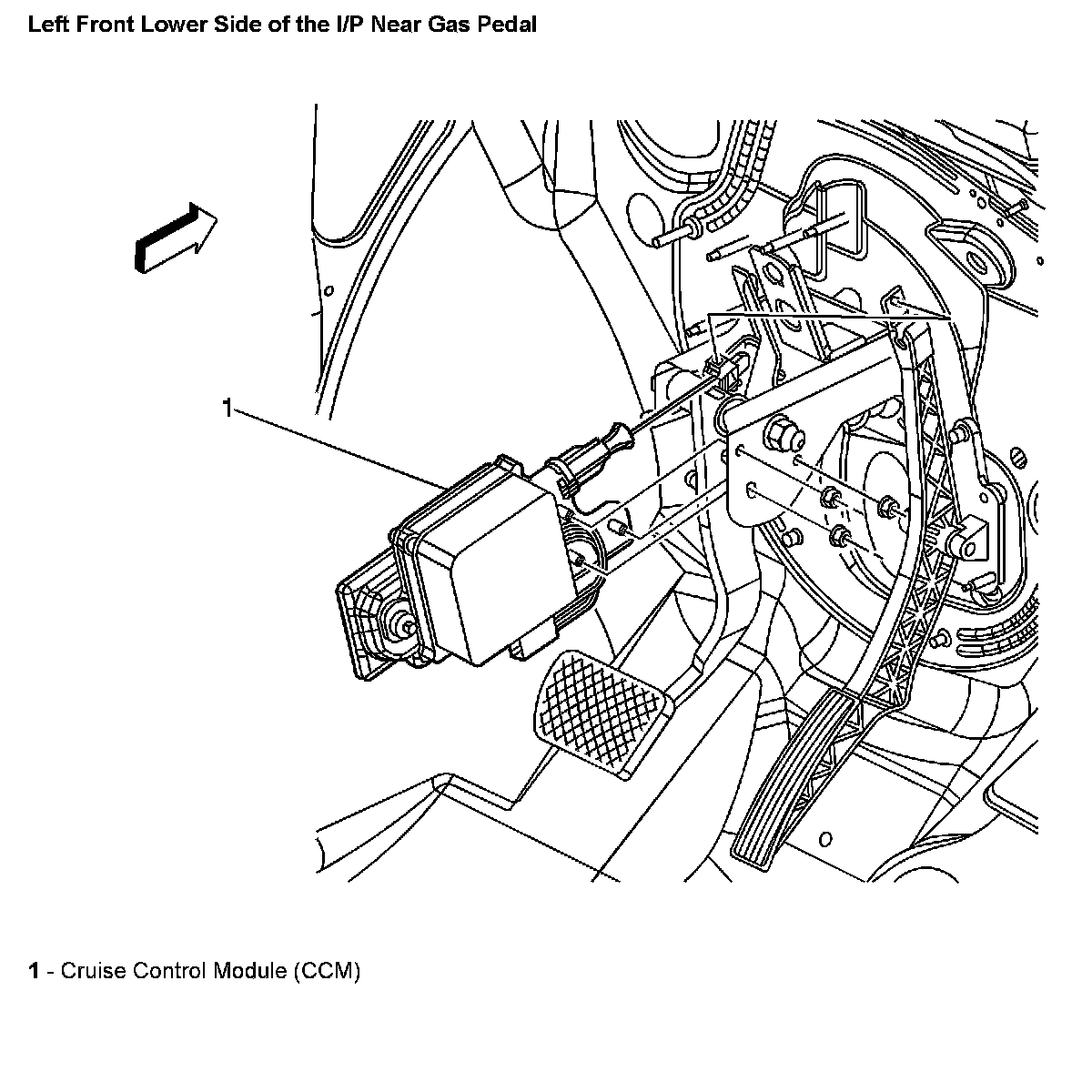 Left Front Lower Side Of The I/P Near Gas Pedal:
