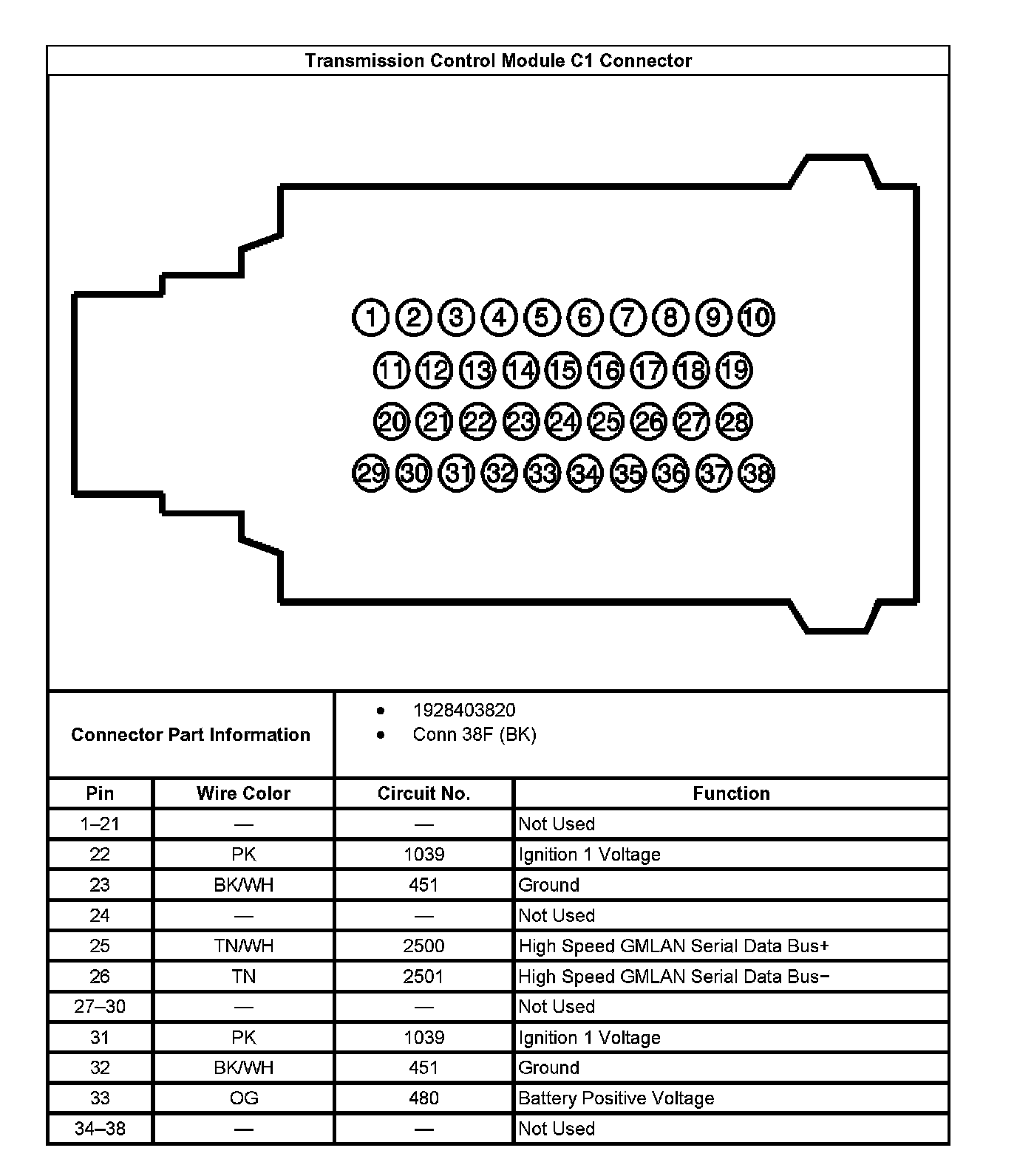 Transmission Control Module C1 Connector