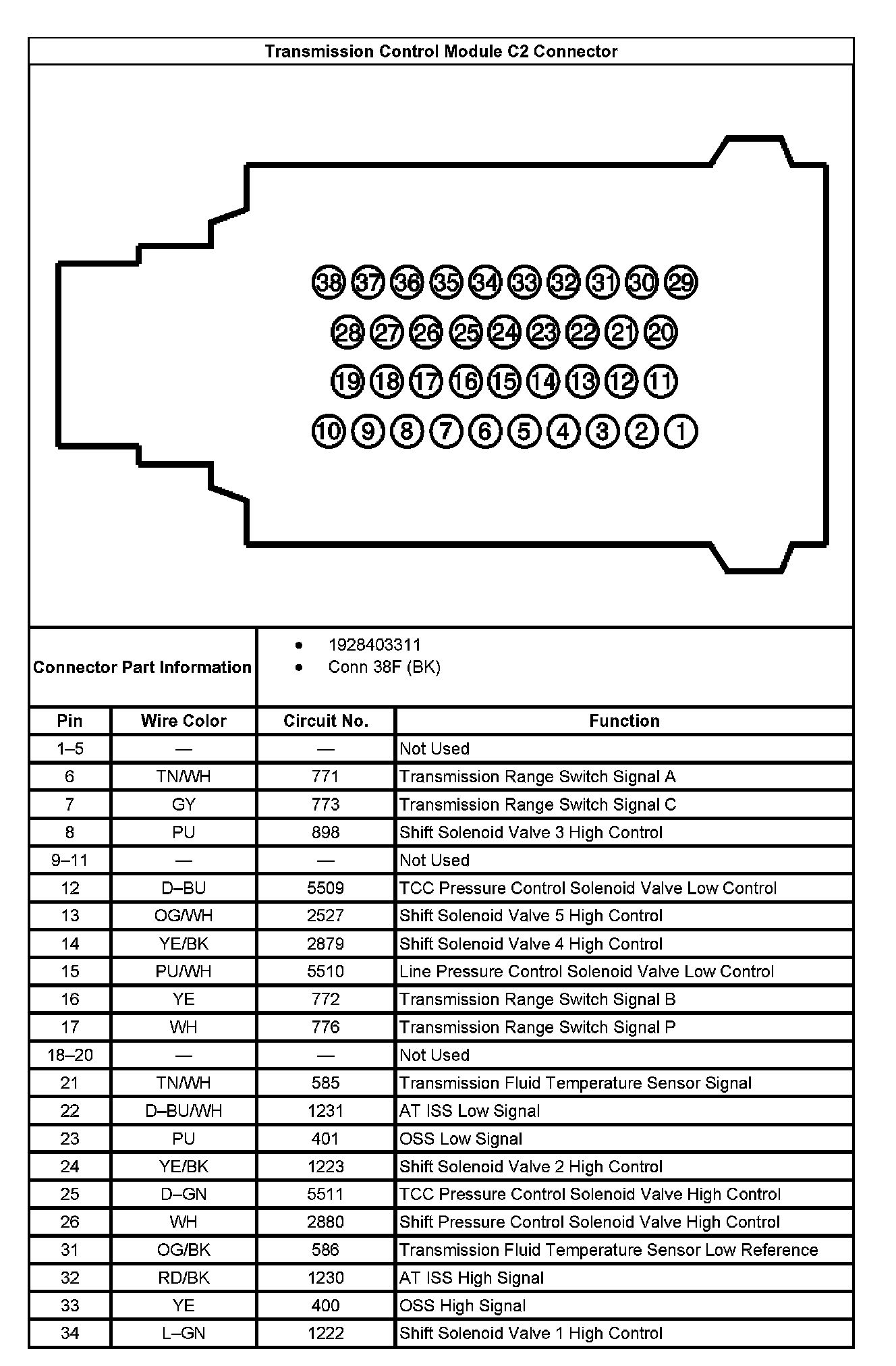 Transmission Control Module C2 Connector