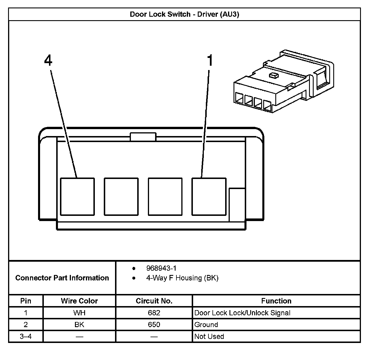 Door Lock Switch - Driver (With RPO Code AU3):