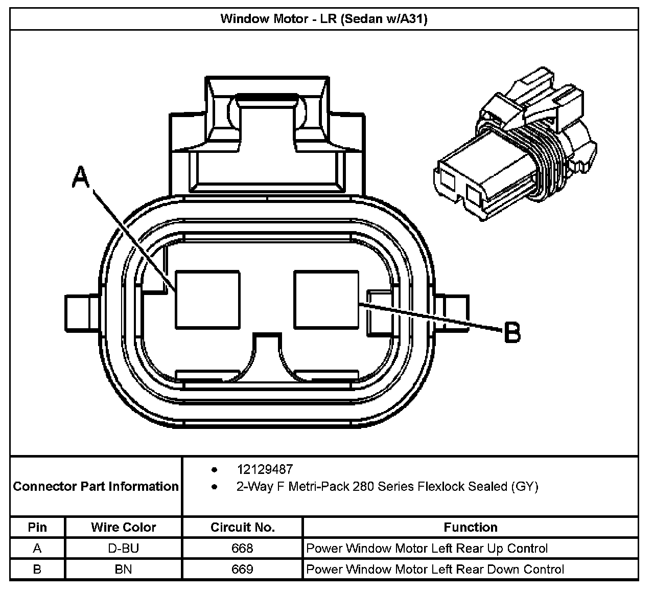 Window Motor - LR (Sedan With RPO Code A31):