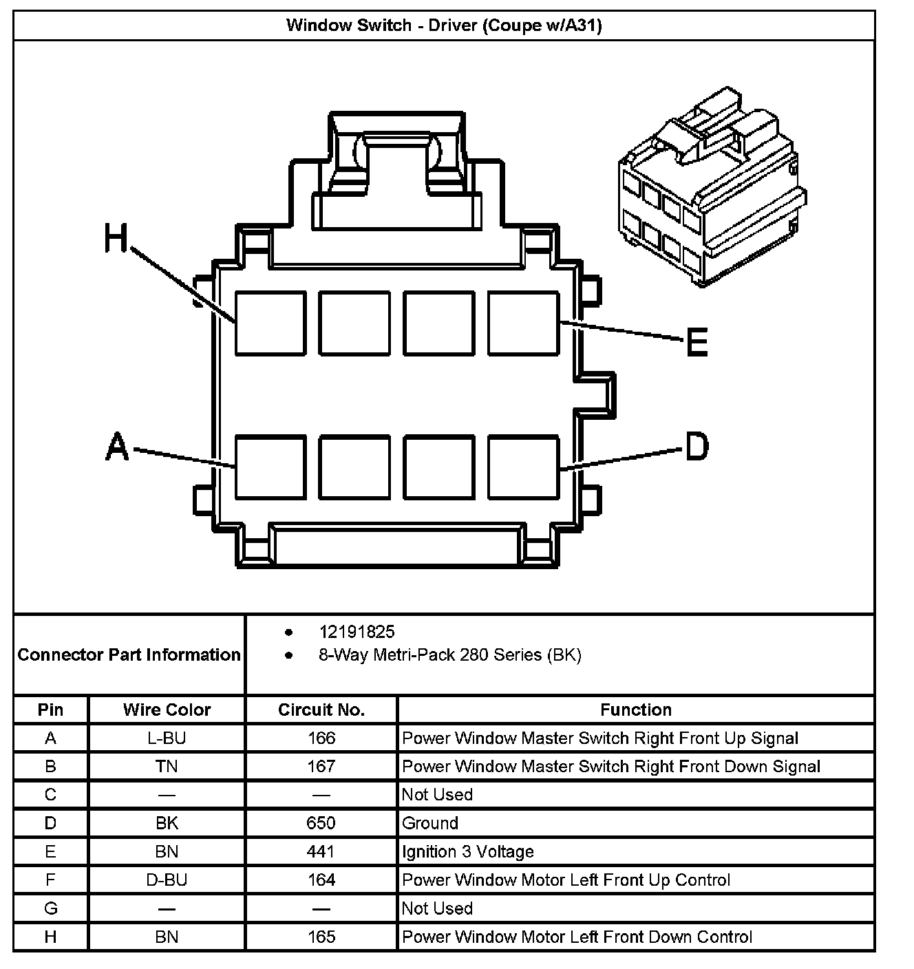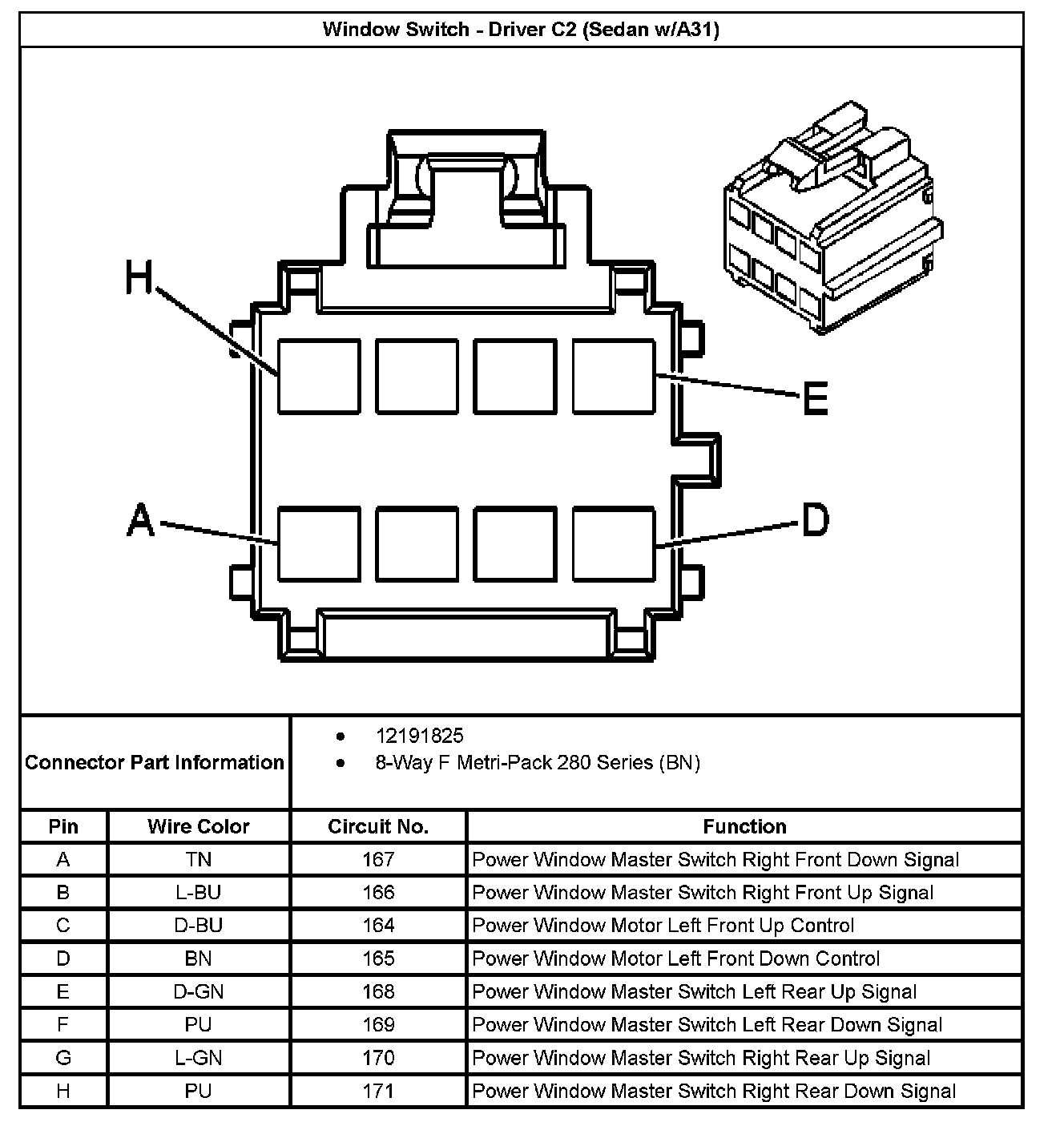 Window Switch - Driver C2 (Sedan With RPO Code A31):