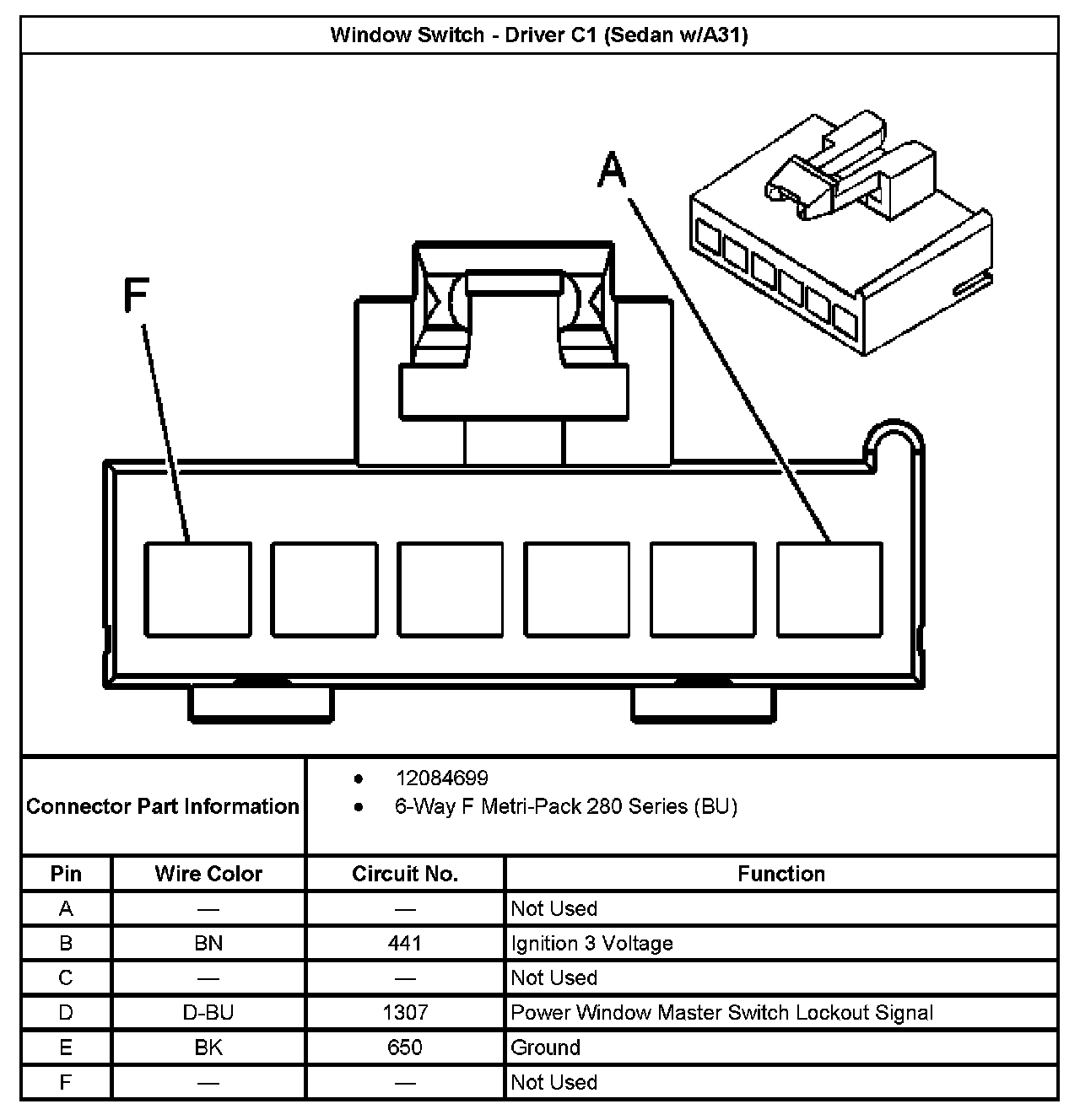 Window Switch - Driver C1 (Sedan With RPO Code A31):