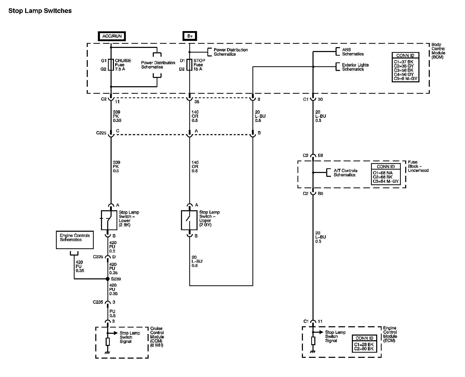 The locations for the Connectors, Grounds, Splices, and Grommets shown within these diagrams can be found via their numbers at Vehicle Locations.
