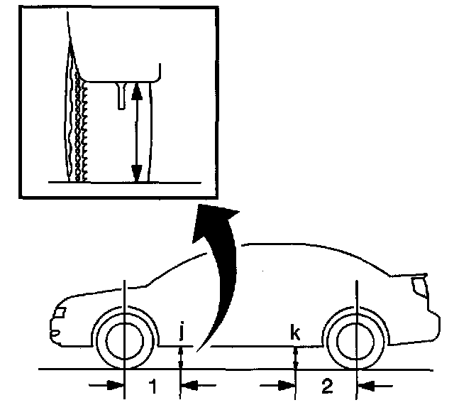 8. Measuring the K dimension for the left and right side of the vehicle inboard of the pinch-weld flange at 560 mm (22 inch) from the centerline of the rear wheel.