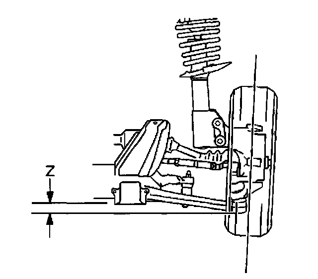 The Z height dimension measurement determines the proper ride height for the front end of the vehicle. There is no adjustment procedure. Repair may require replacement of suspension components. Use the following procedure to check the Z height dimension: