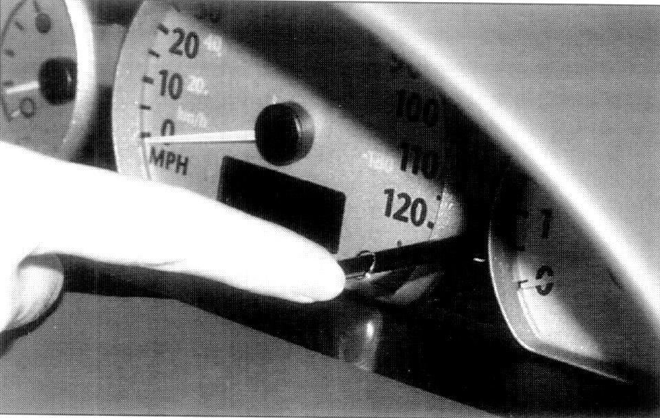 2. Press and hold the trip odometer stem for a few seconds until a chime sounds five times and "RESET" is shown in the message center.