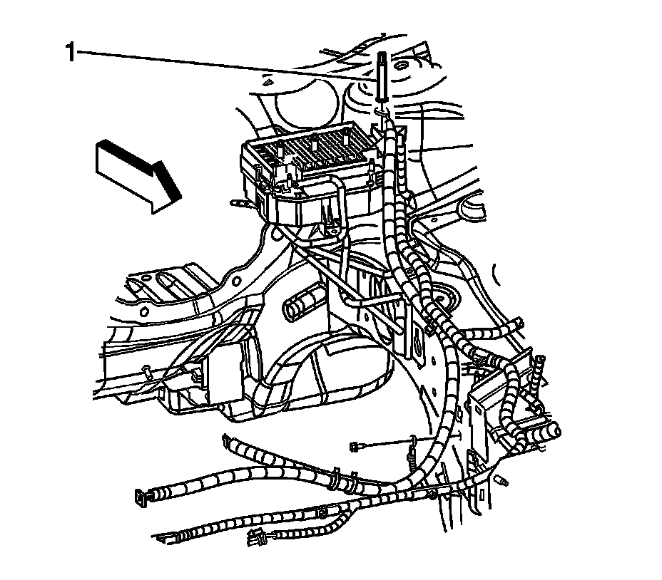 5. Disconnect the remote battery terminal and cables (1).