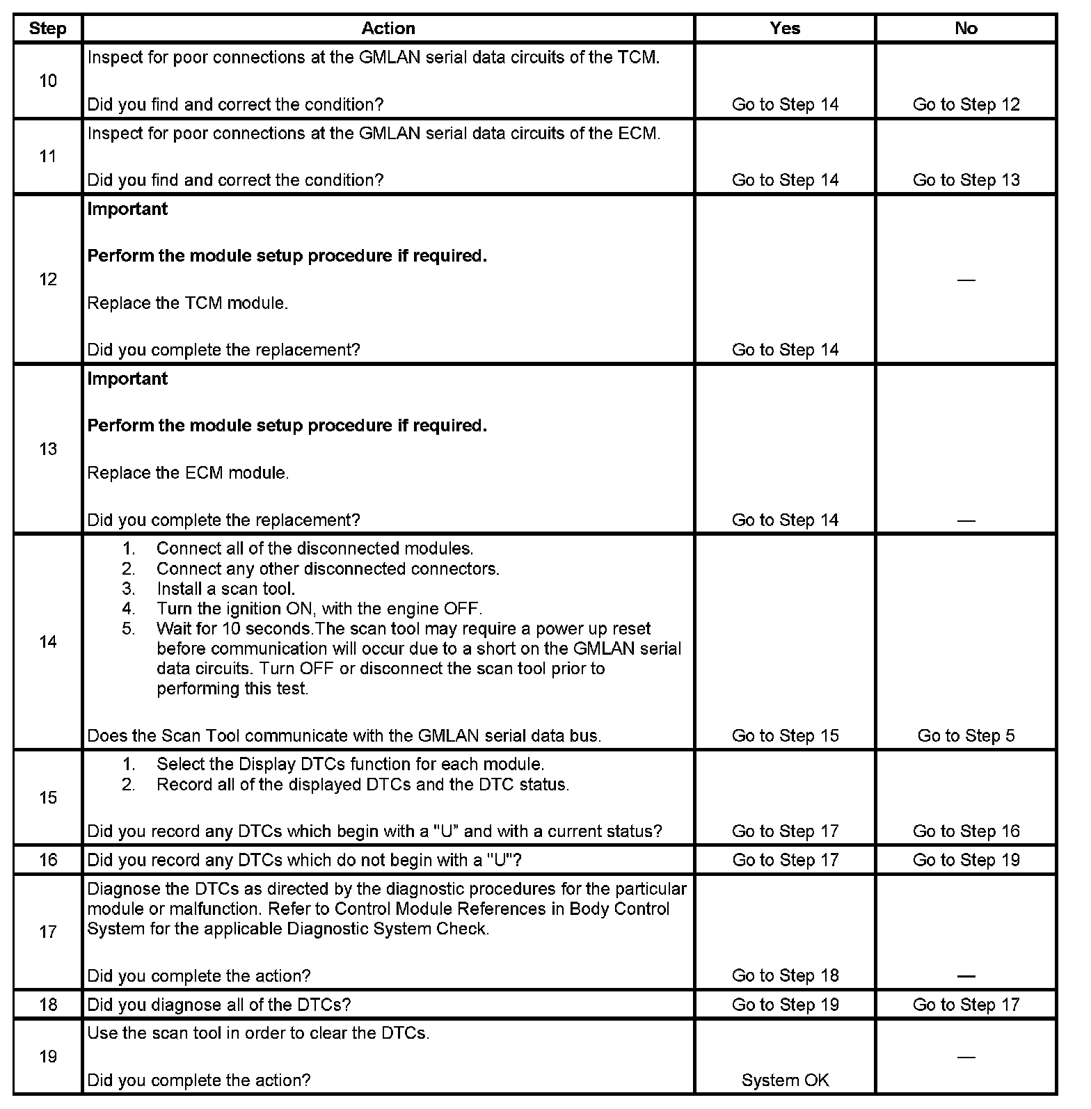2. A partial malfunction in the GMLAN serial data circuits uses a different procedure from a total malfunction of the GMLAN data circuits. The following modules communicate on the GMLAN serial data circuits: