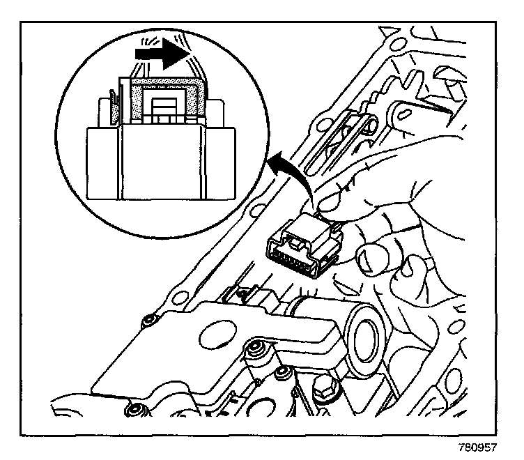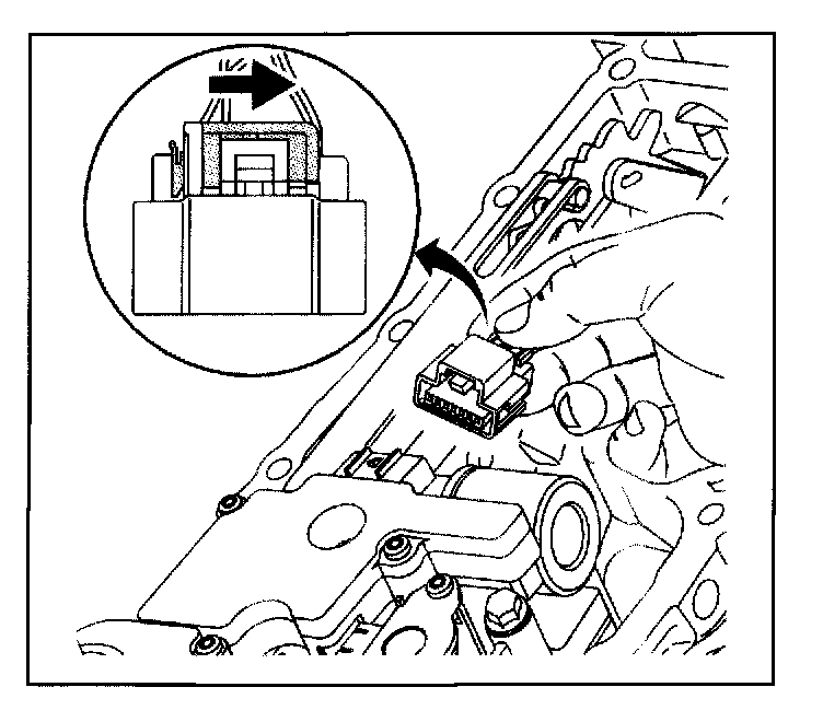 7. Press the connector tab and remove the connector from the control valve body assembly.