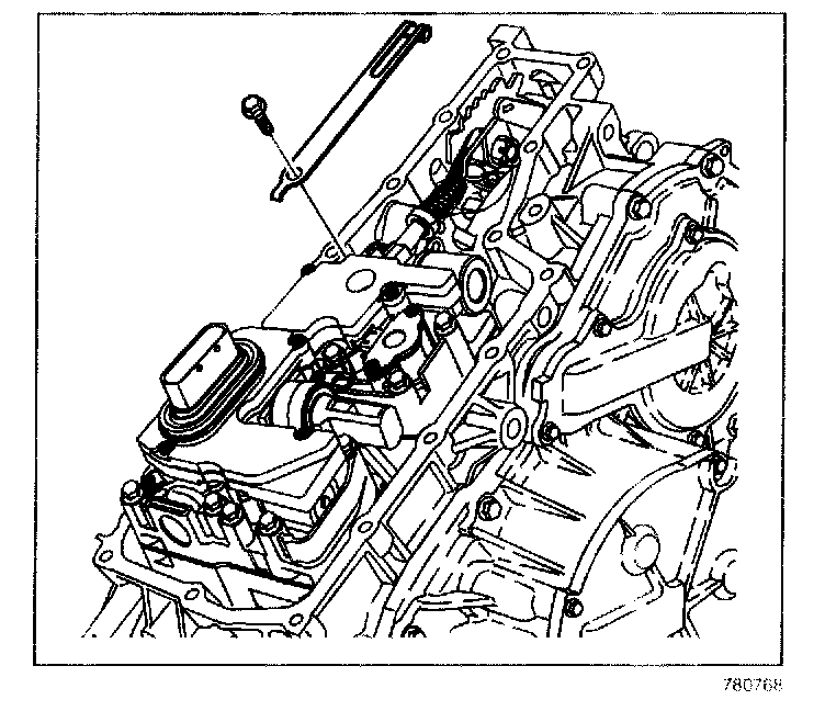 It may be necessary to move the detent lever in order to gain access and remove the bolt securing the output speed sensor to the transaxle case assembly.