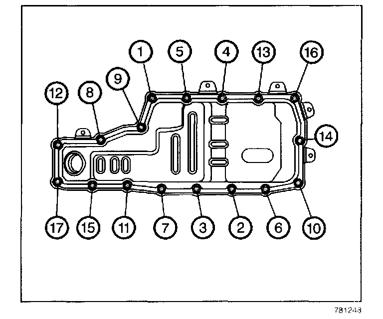 Bolts to 11 N.m (8 ft-lbs) in the sequence shown.
