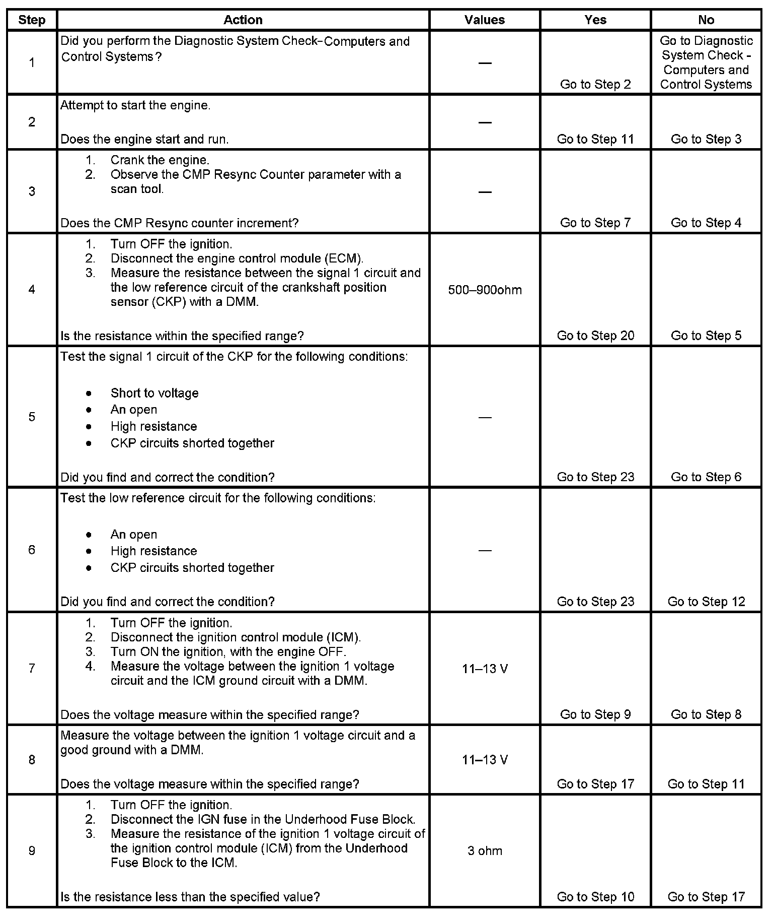 - The camshaft position (CMP) sensor signal circuit