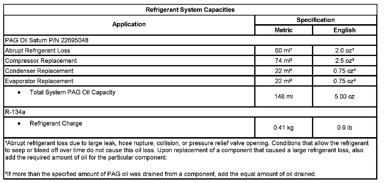 Refrigerant System Capacities: