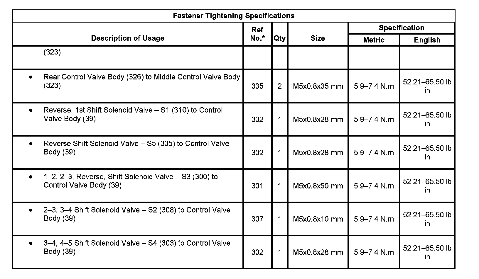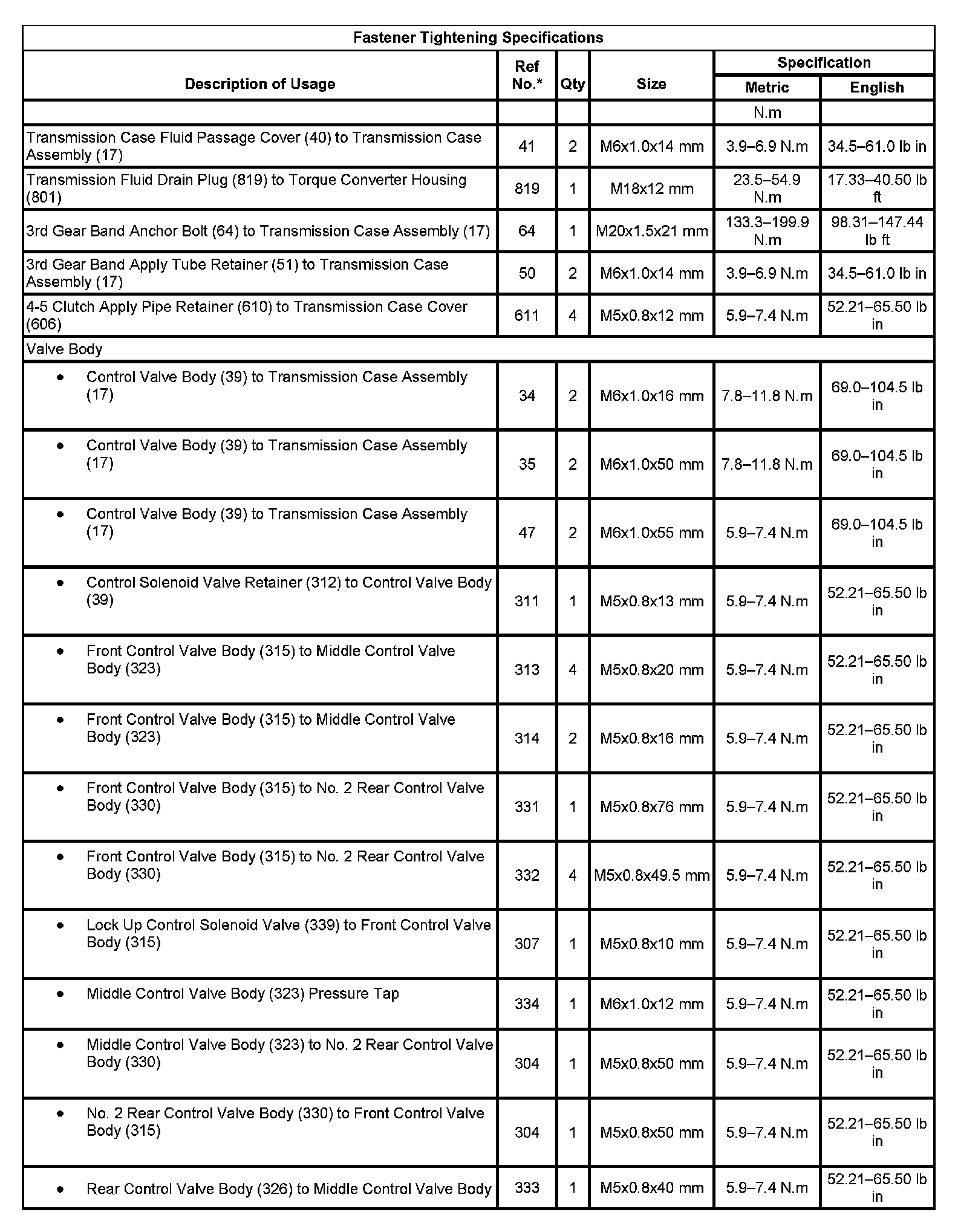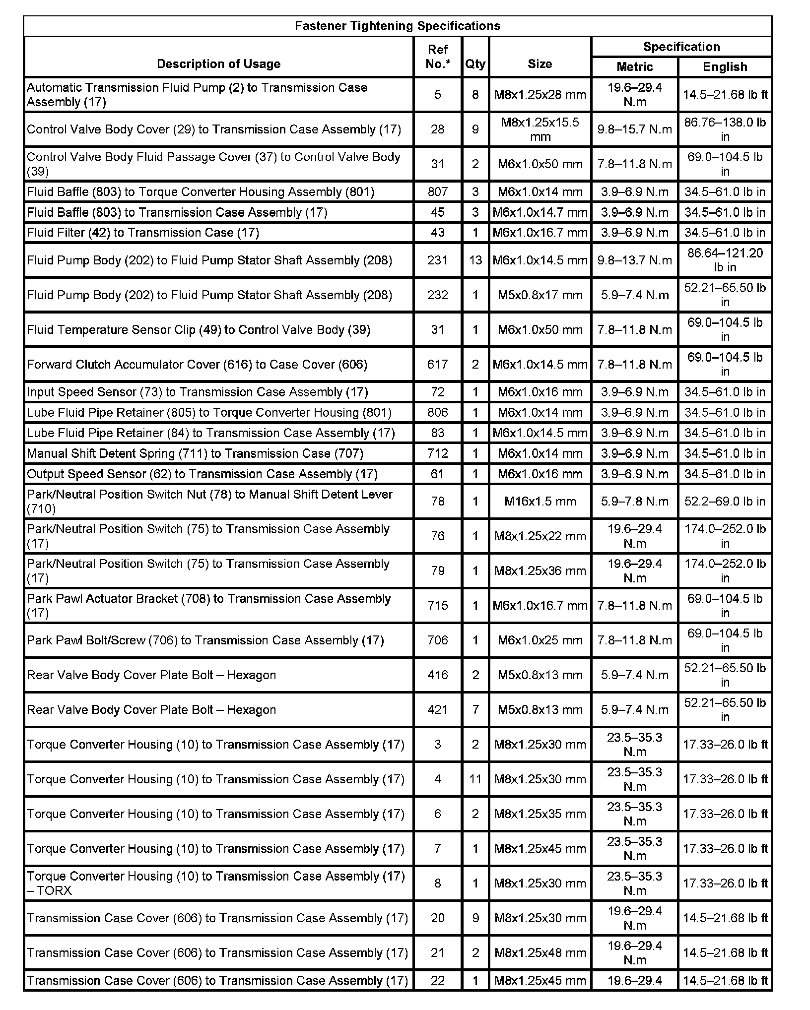 Fastener Tightening Specifications