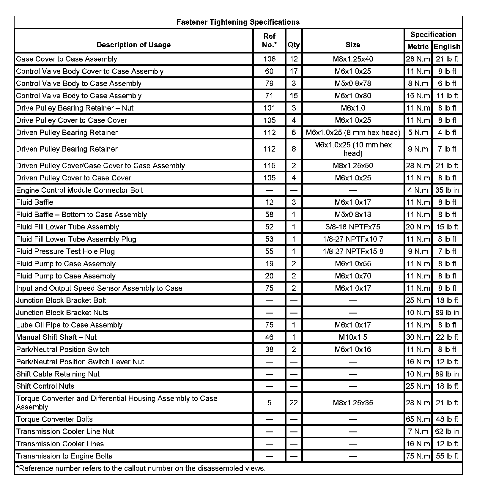 Fastener Tightening Specifications