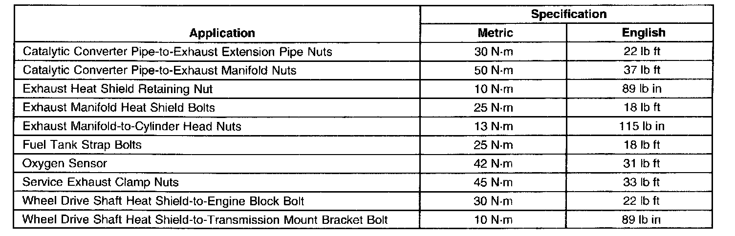 Fastener Tightening Specifications: